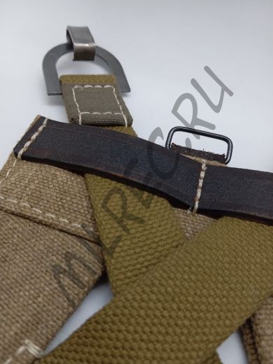 Основной частью ранца была оливково-зеленая полужесткая трапециевидная рама из брезентовой тесьмы (Gurtbandtragegerust), называемая коллекционерами «А-образной рамой». D-об-разные кольца с крючками были на каждом из четырех концов рамы, верхняя пара использовалась для пристегивания к задним плечевым D-образным кольцам поддерживающих ремней. Вспомогательные ремешки поддерживающих ремней прикреплялись к нижней паре колец. На нижней части рамы имелись ремешки из тесьмы с пряжками для крепления плащ-палатки. К нижним концам рамы приделывались также два четырехугольных кольца для подвешивания чехла.