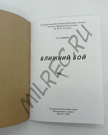 Ближний бой Государственное издательство "Физкультура и спорт" 1944 (репринтное издание)