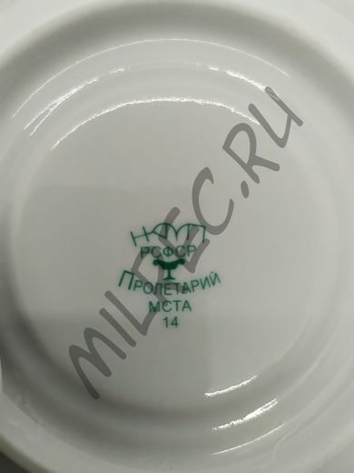 Клеймо фабрики может отличаться в зависимости от партии посуды, но в любом случае все клейма соответствуют, реально выпускавшимся на фарфоровых фабриках, оригиналам.