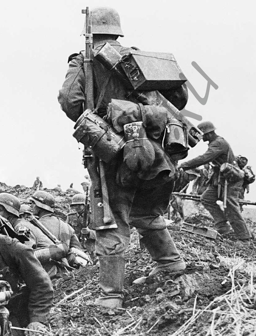 Скатка приторачивалась к ранцу тремя шинельными ремнями для пеших частей (Mantelriemen fur Fusstruppen).