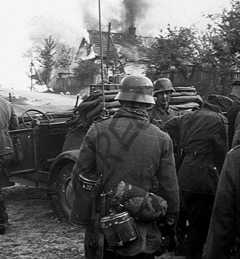 Скатка шинели {Mantelrolle) в форме подковы состояла из одеяла и плащ-палатки в летние месяцы, и шинели - осенью и зимой.