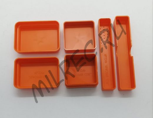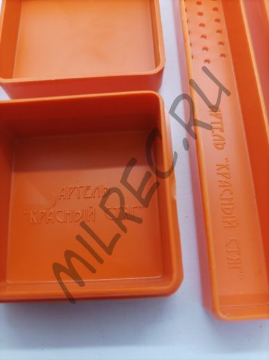 Гигиенический набор военнослужащего РККА (реплика) оранжевый В комплект входит: мыльница, футляры для зубного порошка и зубной щетки.