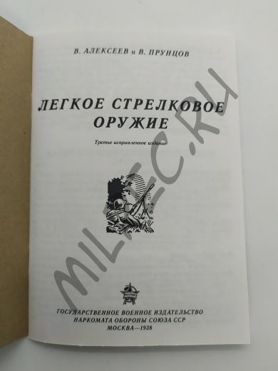 Легкое стрелковое оружие третье исправленное издание Государственное военное издательство Наркомата Обороны Союза ССР Москва - 1938 (репринтное издание)