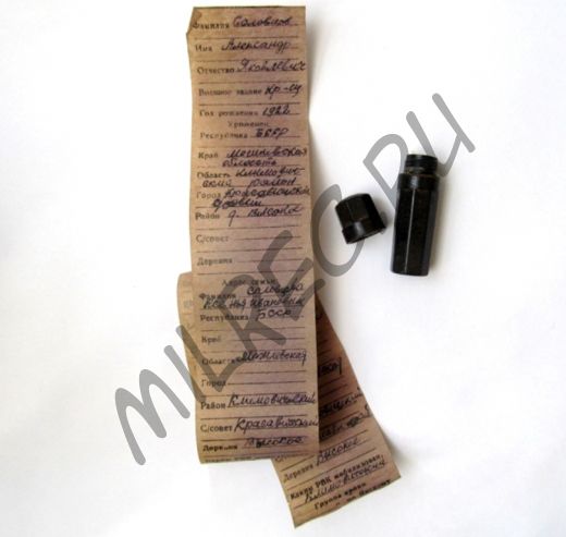 Бланк содержал все необходимые сведения о бойце. Медальон оказался вполне герметичным при плотной закрутке.