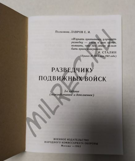 Разведчику подвижных войск. Военное издательство НКО 1943 (репринт)