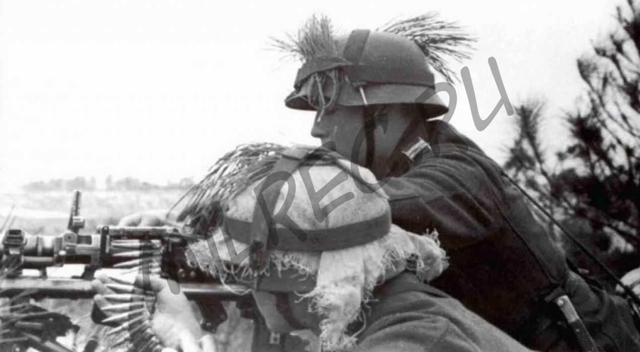 Ее крышка закрывала всю внешнюю поверхность сумки для дополнительной защиты от погодных условий. На верхних углах сумки были пристегнуты брезентовые петли, крепившие сумку к поясному ремню. Между ними была простая брезентовая петля, соединявшаяся с поясным ремнем с помощью крючка. Снизу кожаными петлями крепились D-образ-ные кольца, к ним пристегивались фляга и котелок. Примерно в двух третьих длины крышки ниже D-образных колец были пришиты две кожаные петли для продевания в них ремешков котелка и фляги, чтобы они плотно прилегали к остальному снаряжению и не болтались при движении.