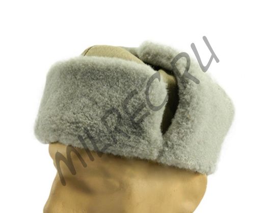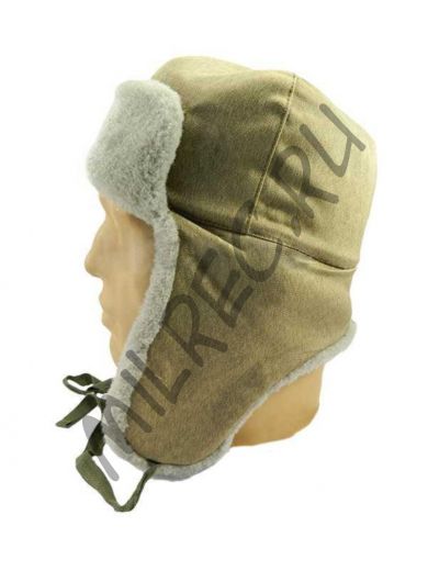 Шапка-ушанка из хб и светло-серого искусственного меха, образца 1940 года реплика (под заказ)