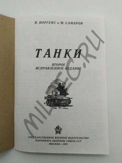 Танки второе исправленное издание Государственное военное издательство Наркомата Обороны Союза ССР Москва - 1939 (репринтное издание)