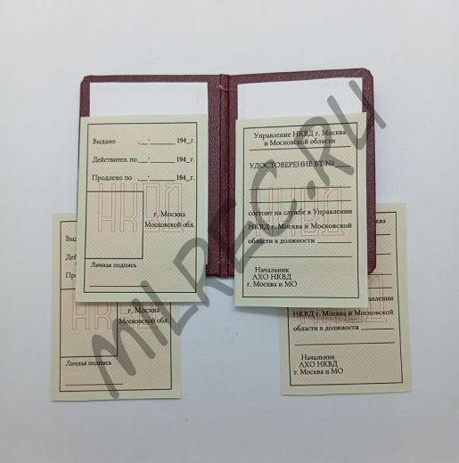 Удостоверение НКВД на 1943 год (копия )Москва и МО вар. 2, два комплекта вклеек НКВД Москва и МО