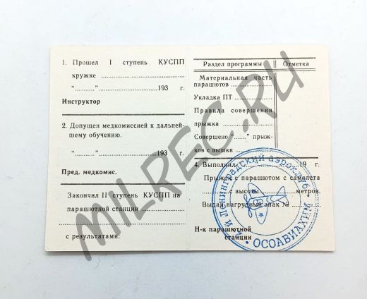 Удостоверение парашютиста (копия)