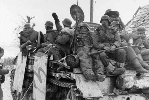 Капюшон также был с мехом, и в откинутом виде, как пелерПарки впервые появились в 1943 году во время боевых действий под Харьковом.